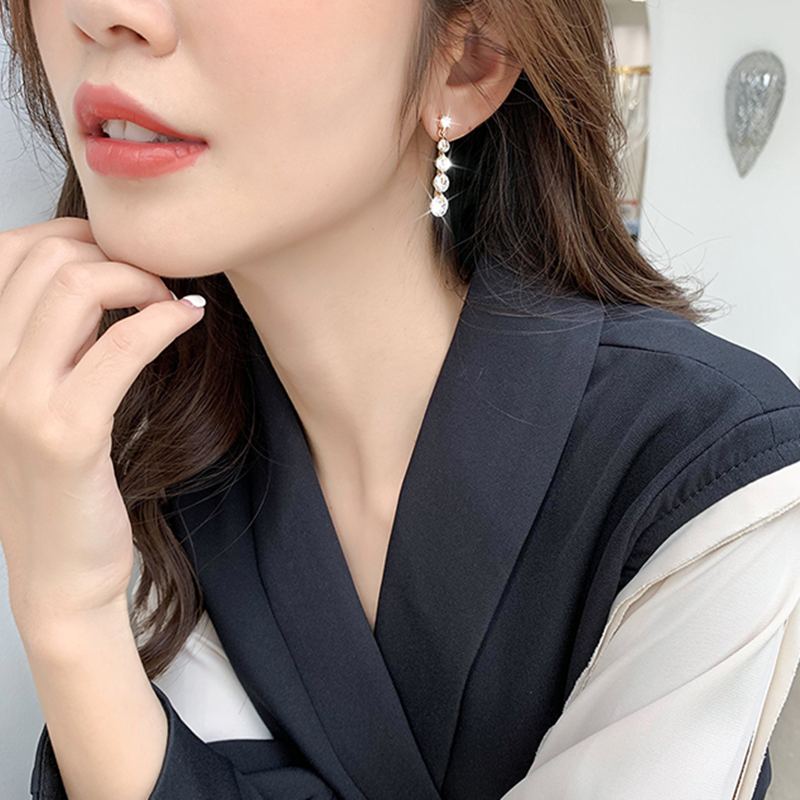 Light luxury high-end bright zircon earrings Korean simple temperament long tassel ear needle female sterling silver ear needle jewelry