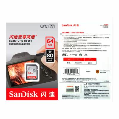 SanDiskSanDisk Extreme High Speed SDHC Memory Card 64G c10 Camera Card SD Card 80MB S