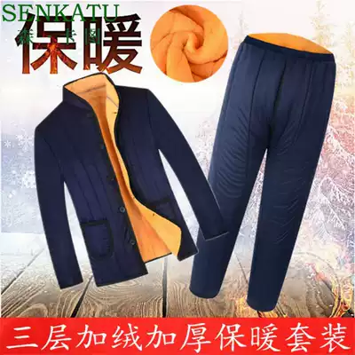 Elderly winter men's wear small quilted jacket plus velvet thickened cotton clothes six, seven and eight-year-old old man warm cotton pants