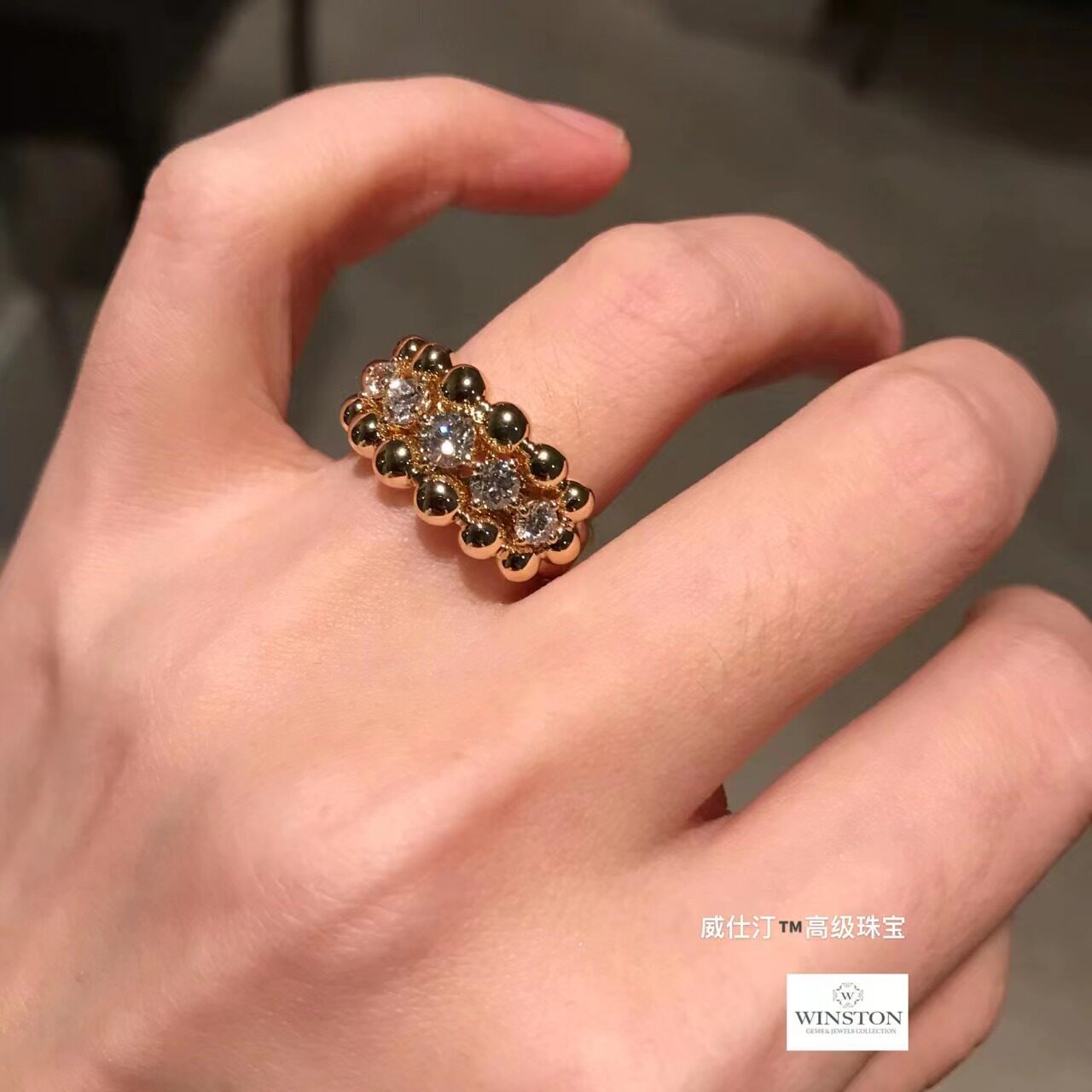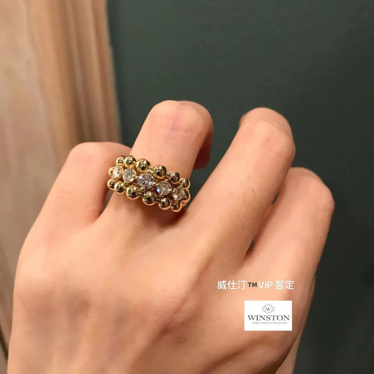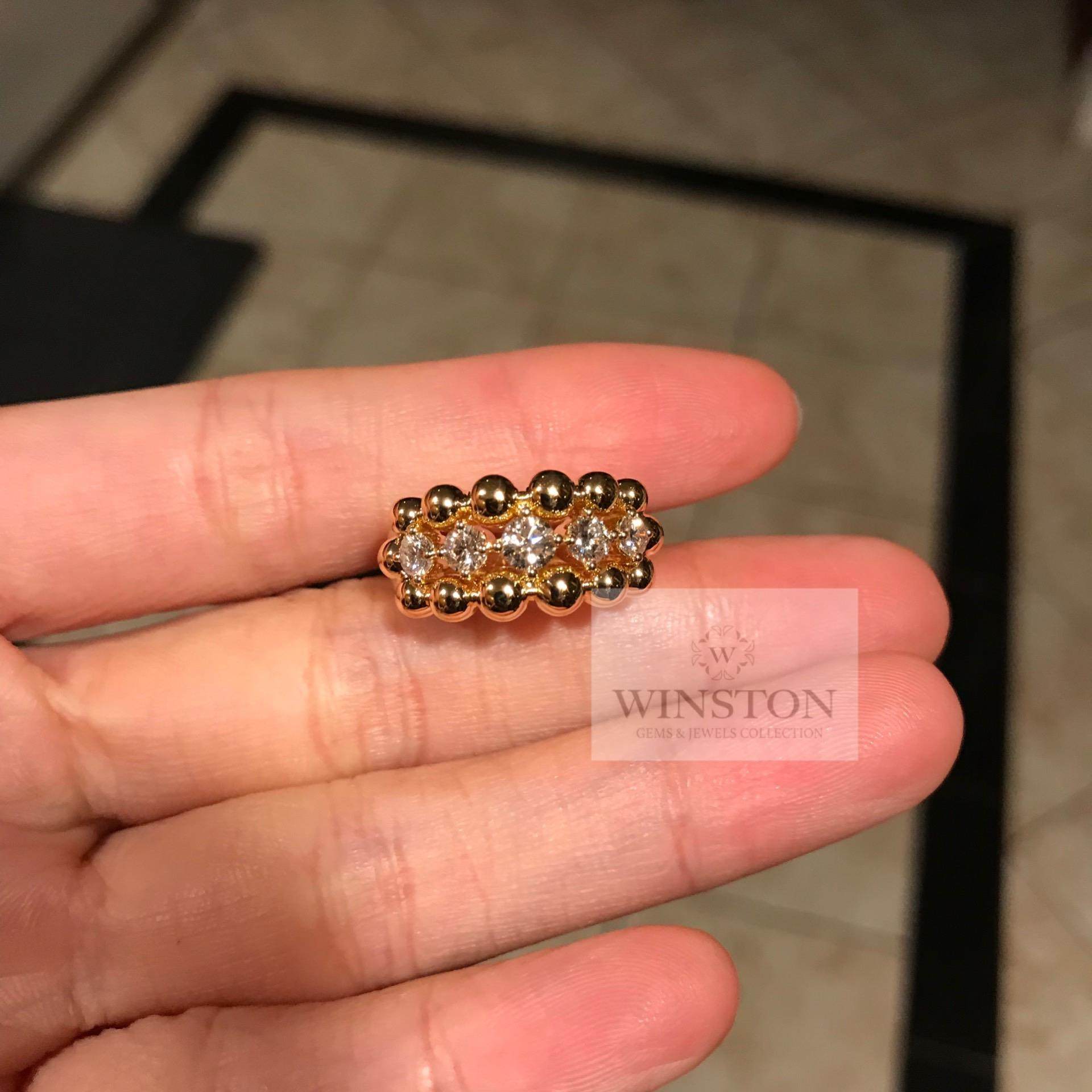(Wistine Jewels) Classic Large Pearl Beads Gold Pearl Round Pearl Diamond 18K Gold Wide Version Bully Steak Ring ring
