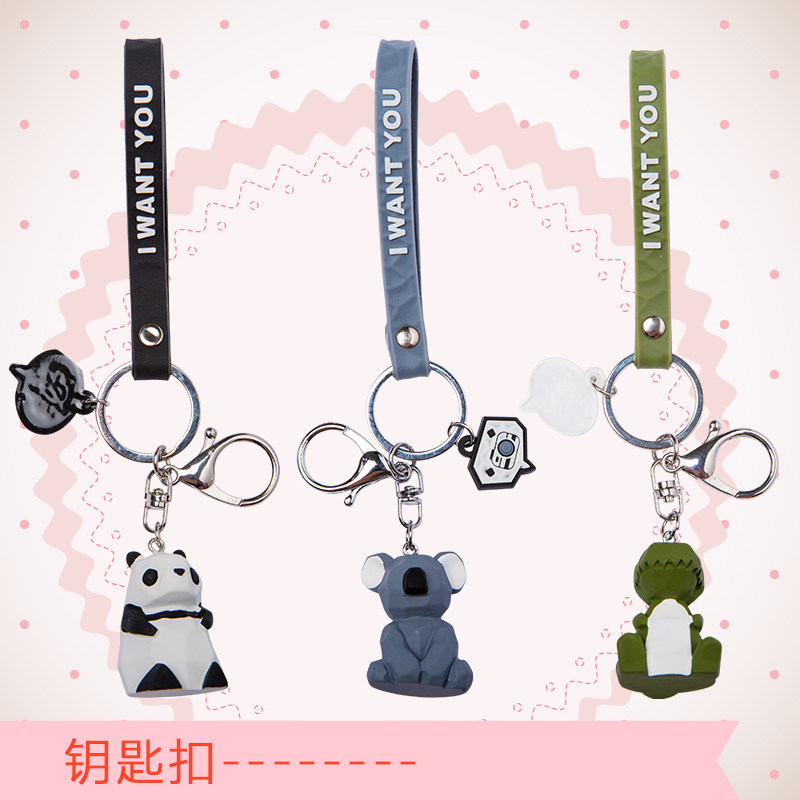 Geometric Panda Dinosaur Keychain Pendant Accessories Car Key Button Male And Female Innet Red Couple bag pendant ring ring