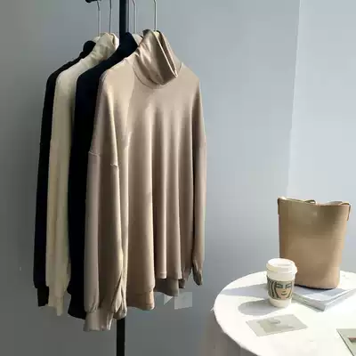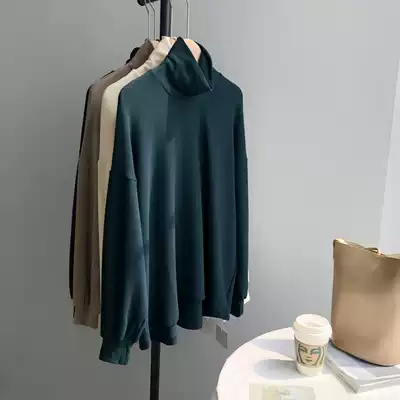 Autumn and winter solid color long sleeve plus velvet high neck loose long sleeve T-shirt female Korean version of solid color inside base shirt female