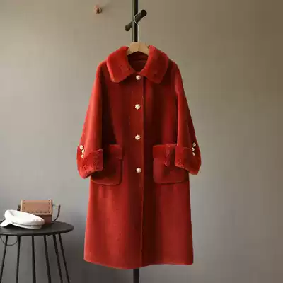 Autumn and winter 100% wool granule cashmere coat women long version cashmere fur fur coat