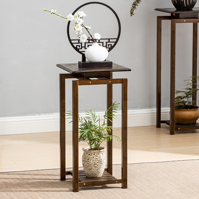 (New Chinese style) Hu-color small flower table n-type feet (New Chinese style) Hu-color medium flower table n-type feet (New Chinese style) Hu-color large flower table n-type feet walnut color carving Small flower table walnut color carving flower stand
