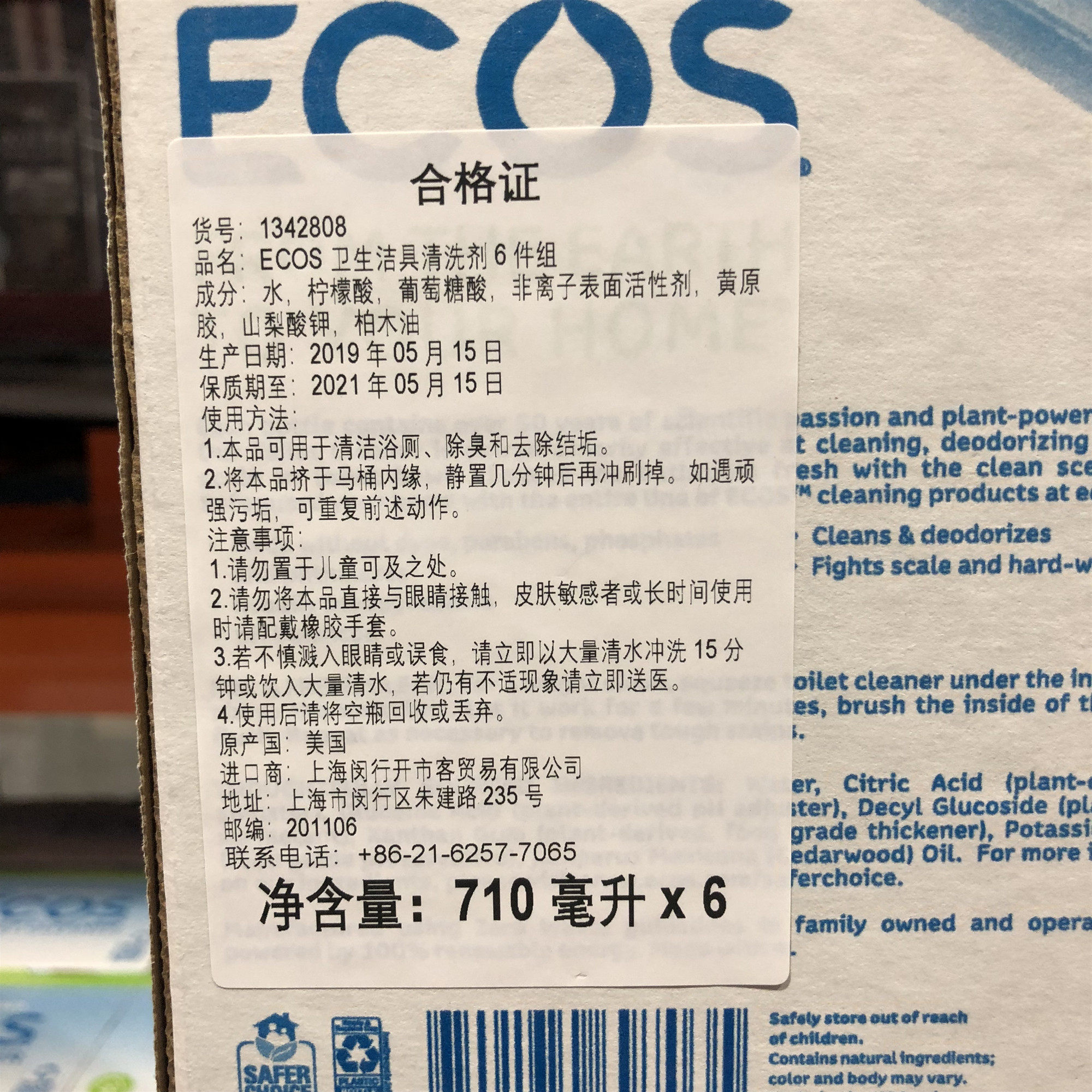 American imports Ecos sanitary cleaning utensils cleaning bath toilet cleaning 6 bottled open city guest Costco Domestic
