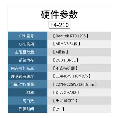 F4-210 standard Quad-Core 2g ● Without disk F4-210 Western data 3T Red Disk 4 F4-210 Western DATA 4T Red Disk 4 F4-210