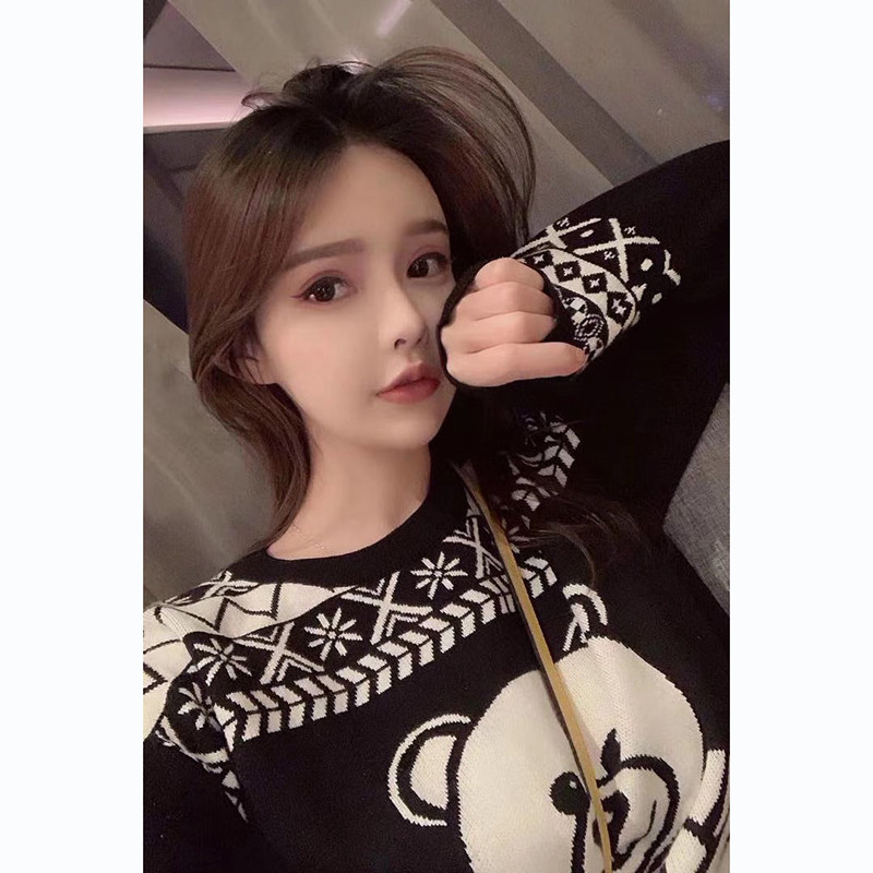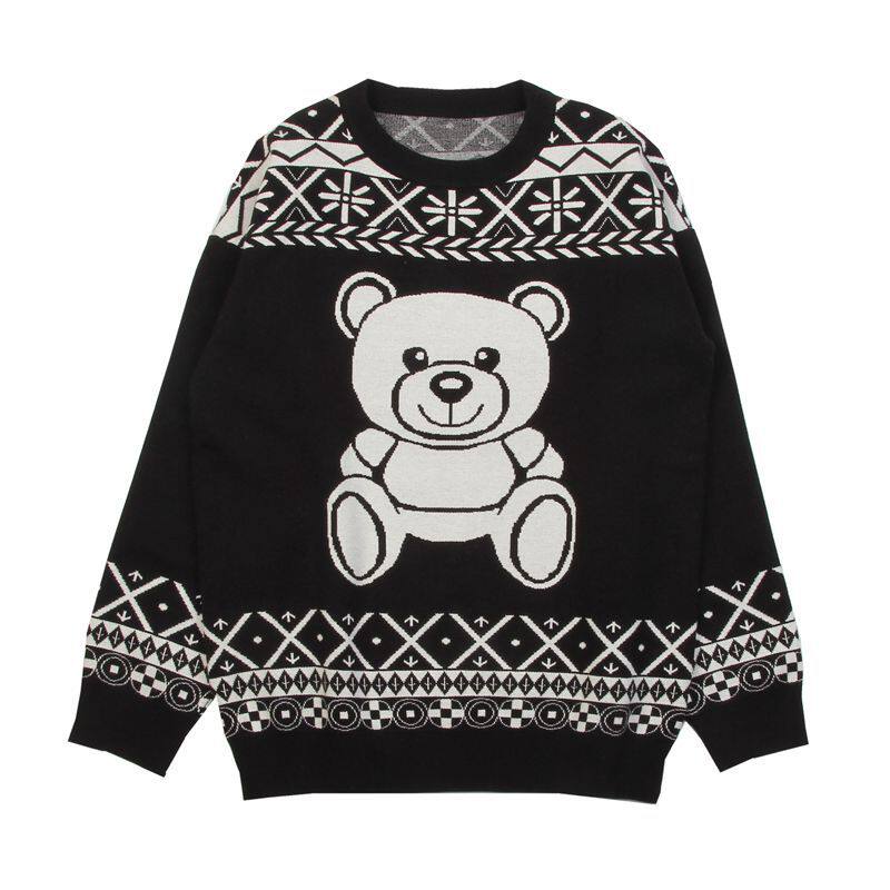 Cartoon Bear Jacquard Pullover Backing Shirt Teddy Bear Fair Island Crewneck Loose Long Sleeve Wool Blend Knitted Shirt