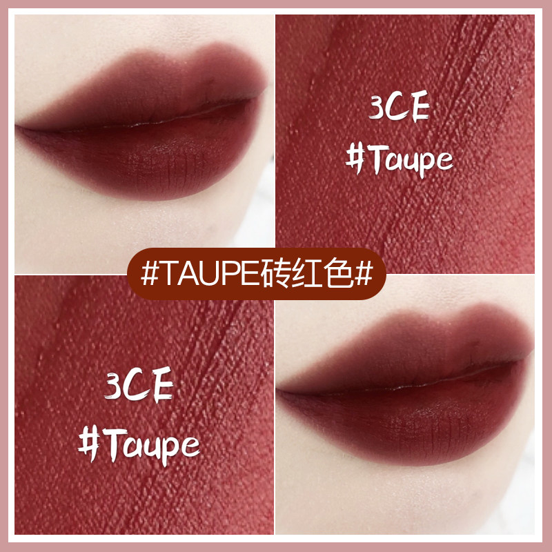3CE Velvet Lip Glazed Pumpkin Rotten Tomato Color Brick Red Bean Sand Taupe Matte Fog Surface Lipstick