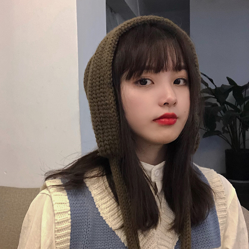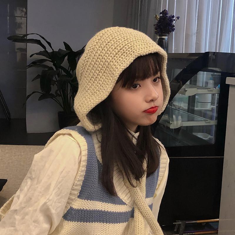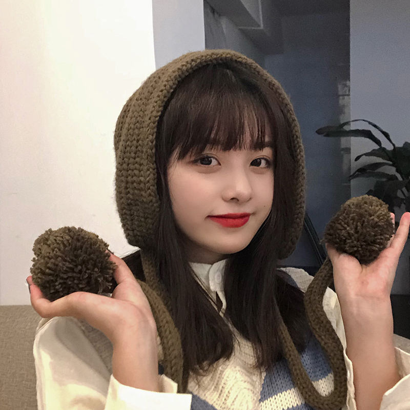 Handmade weaving long tie with soft sister hair cap female thickening warmth and ear knitting tide of thunder hat