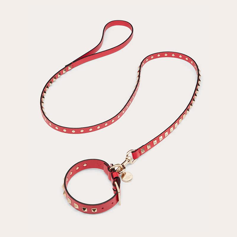 VALENTINO VAN RENTINO RED ROCKSTUD PET Pet Traction Rope