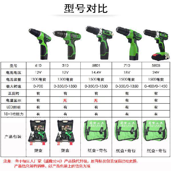 Green Giant Rechargeable Electric Drill 12V14V18V24F Lithium Electric Drill Battery Charger Nude Muscle Head Accessories