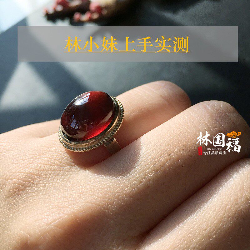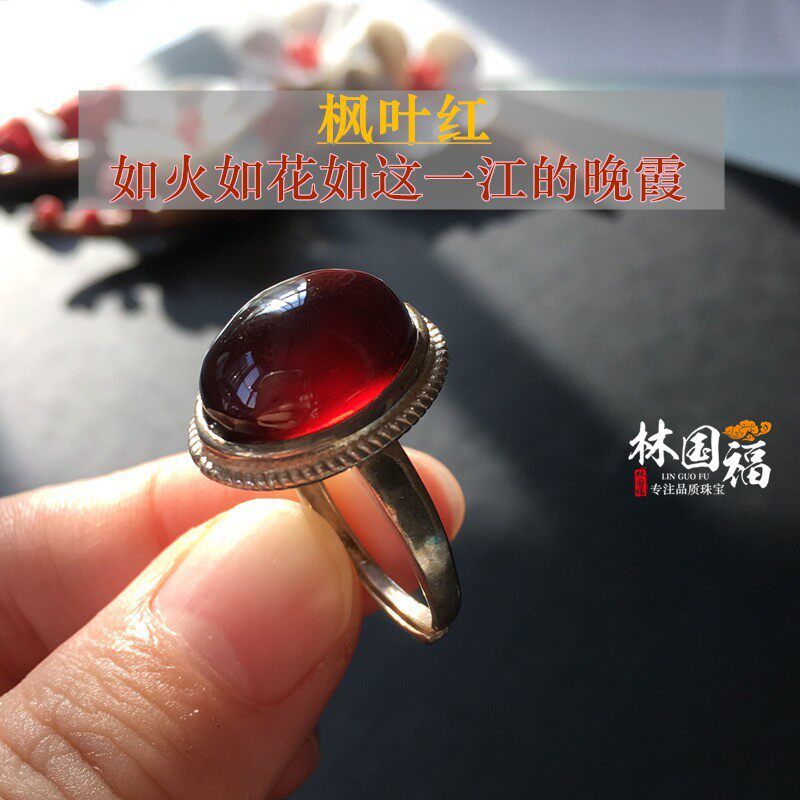 Lin Guofu "sunny late Xia" collection grade Brazilian orange red pomegranate stone ring lady one figure