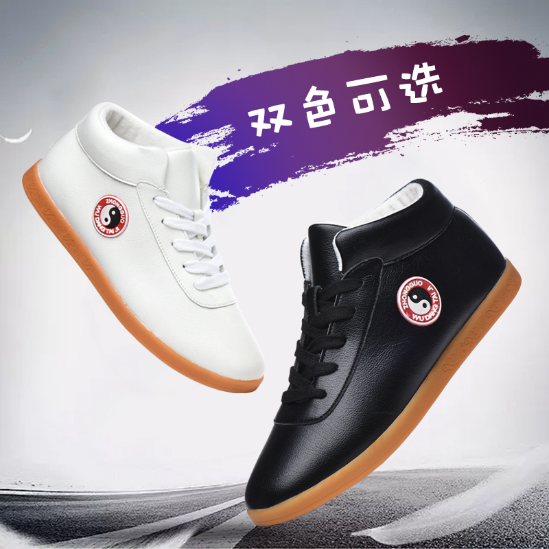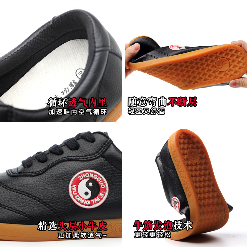 Taiji shoes female spring new leather bulb soles anti-slip tai chi boots training sports shoes