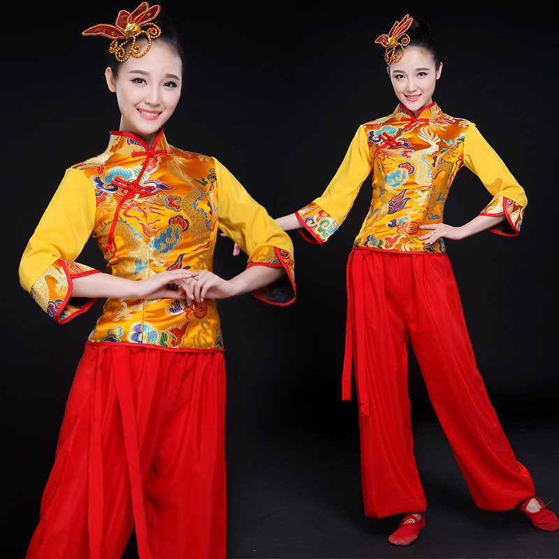 Yangge clothing women's suit new middle-aged waist drum clothing modern square dance Classical fan dance performance clothing for adults
