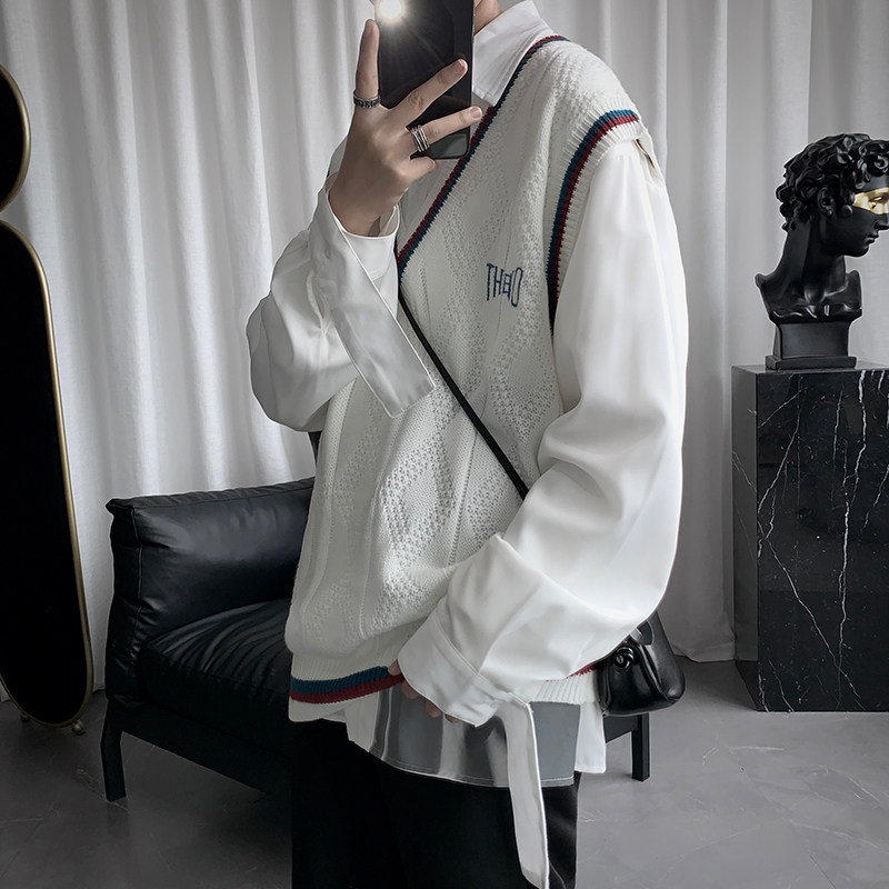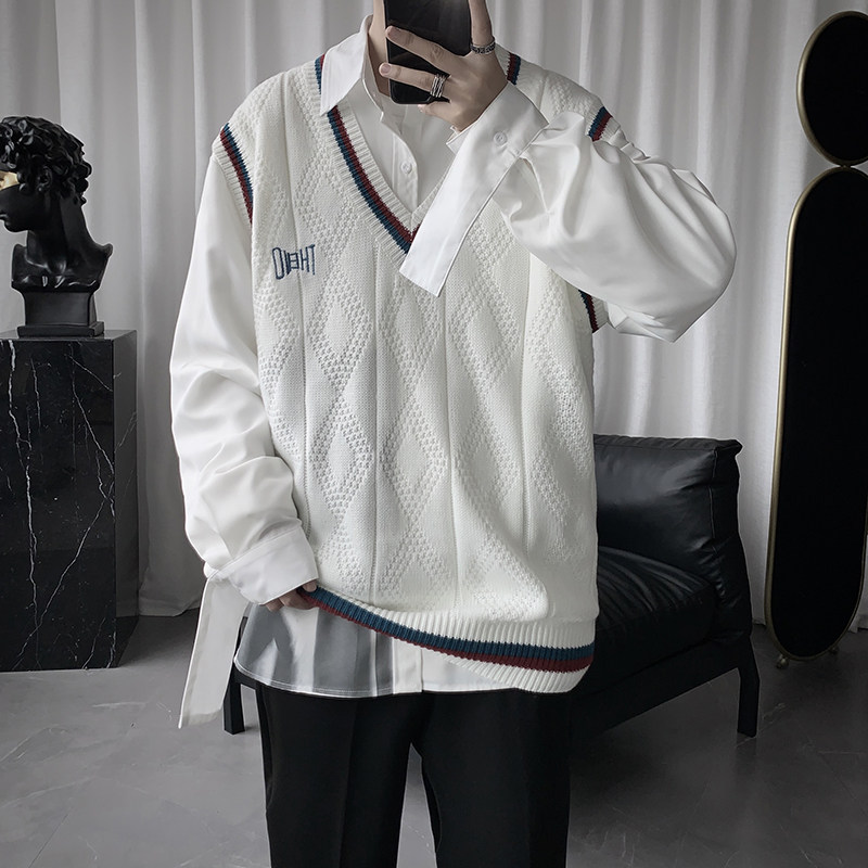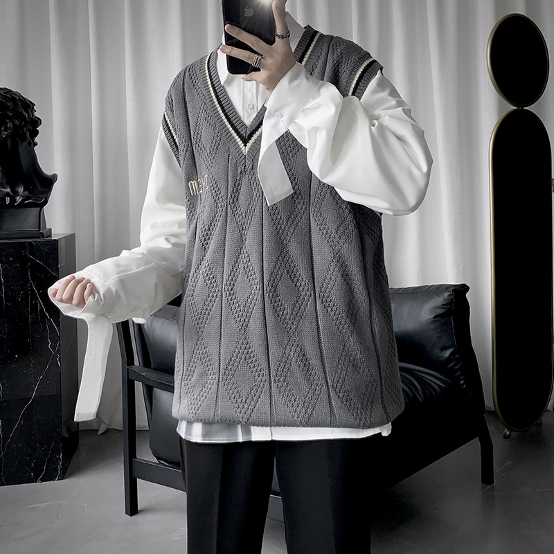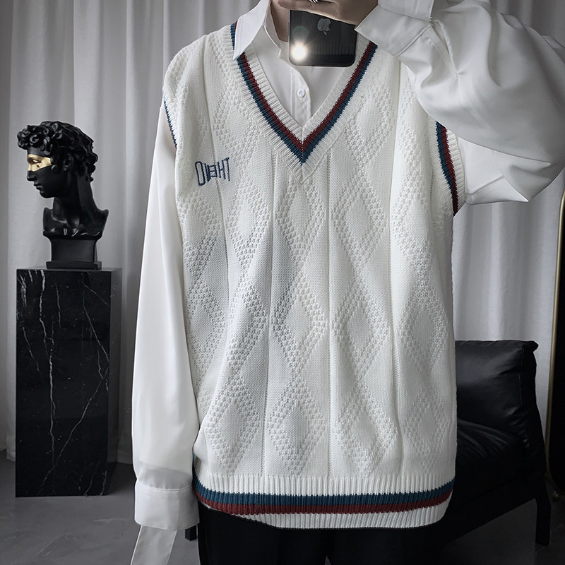 Couple vest sweater vest men's Korean version trendy relaxation college windy vest men's autumn and winter sleeveless jersey men