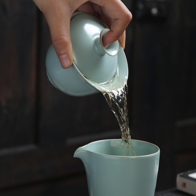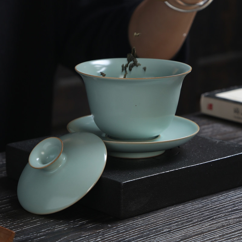 Yuan Yu kiln three - tall bowl, the mountain ru kiln three to cover the bowl of Baikawa ru kiln to cover the bowl of the fair cup of the kiln