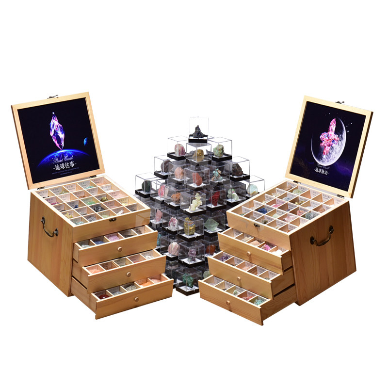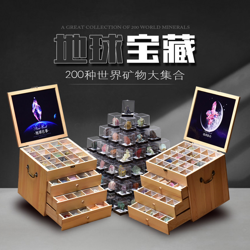 200 kinds of natural ore specimen box Gemstone mineral crystal Amethyst ball Agate fluorite stone Home decoration