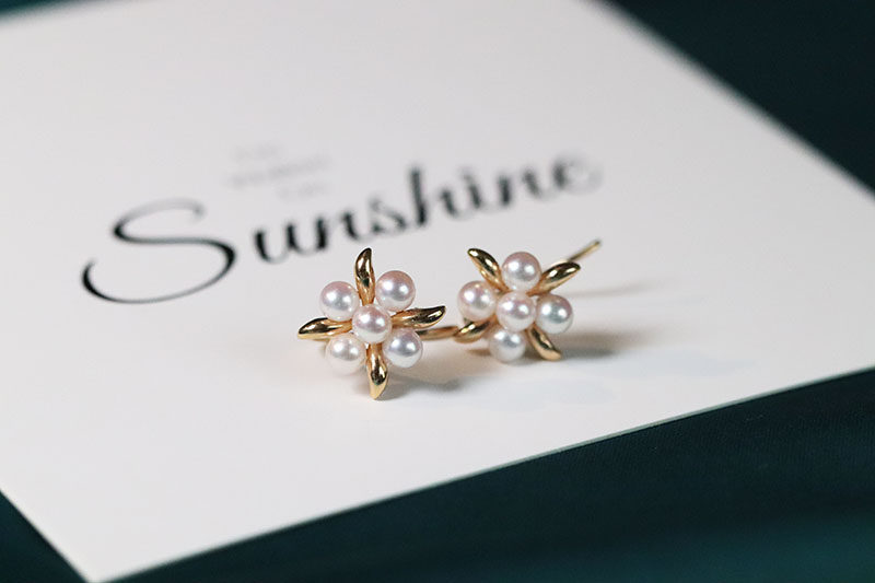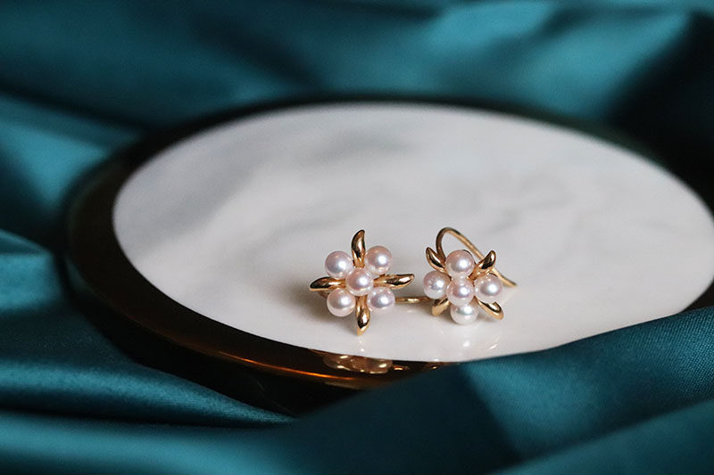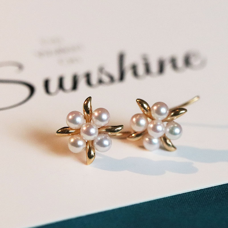 Ear Dark Fragrance Japanese Aurora Akoya Color Rin Bead Natural Seawater Pearl 18K Gold Ear Hook Earrings Small Flower Earrings