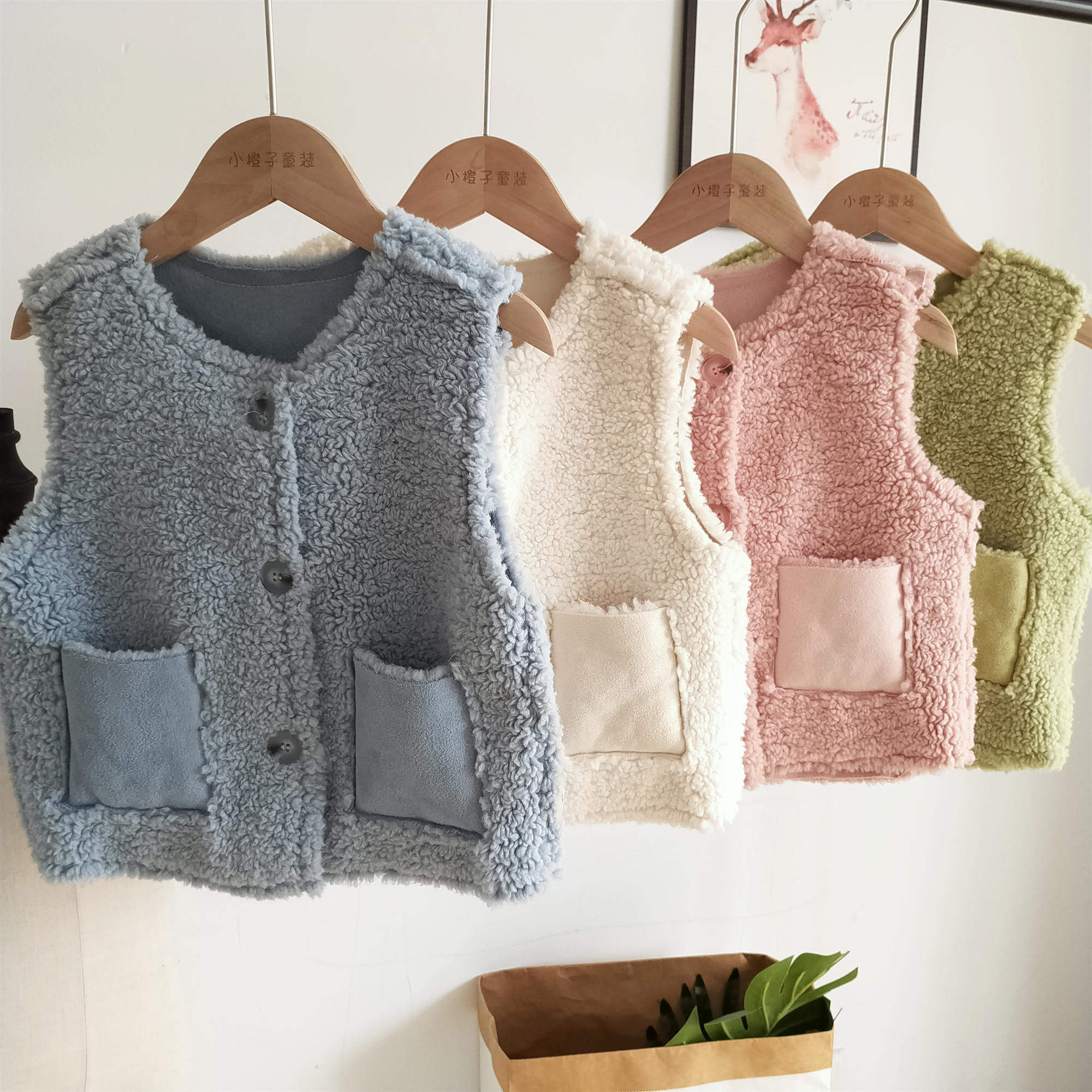 Girl's fur one vest 2022 Fall and Winter dress new children's baby's horse - nail baby's Korean air canned shoulder