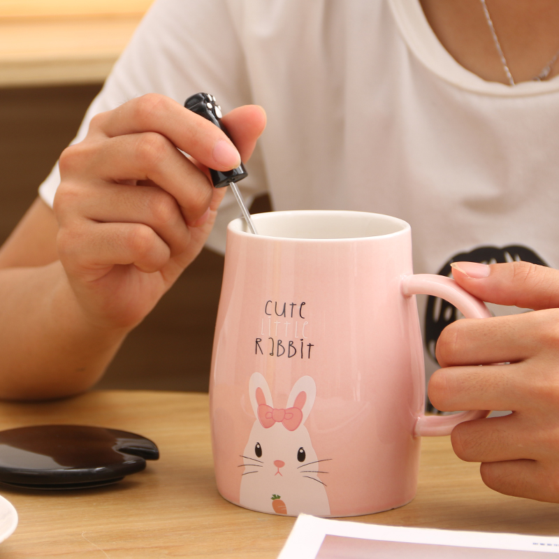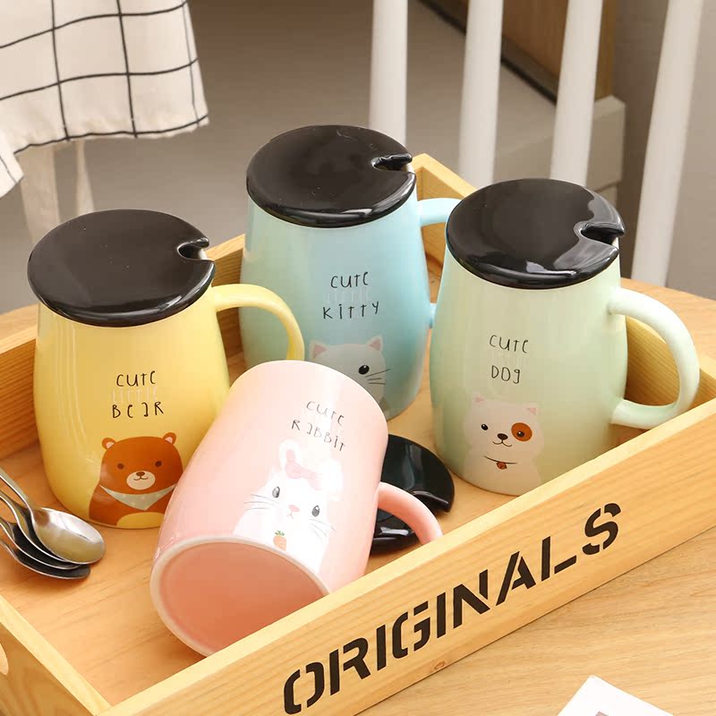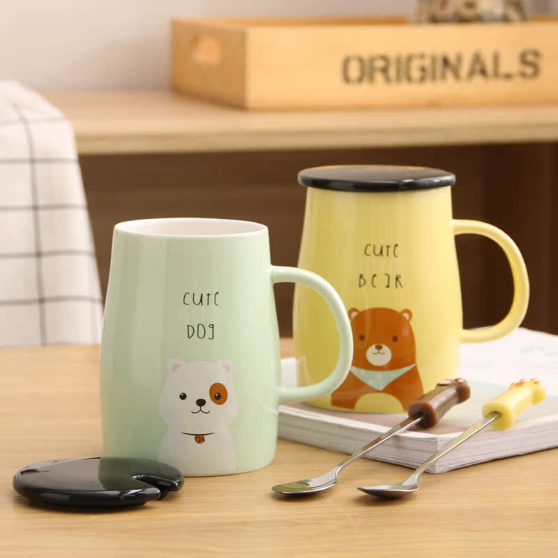 Creative ceramic mug cute cartoon couple water cup breakfast cup milk coffee cereal cup with lid spoon