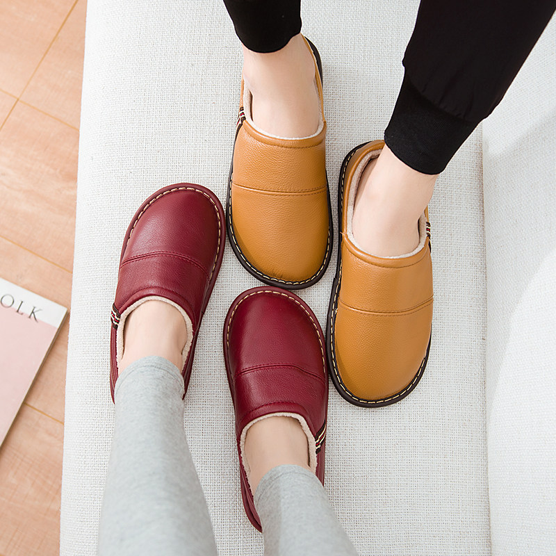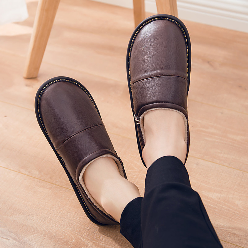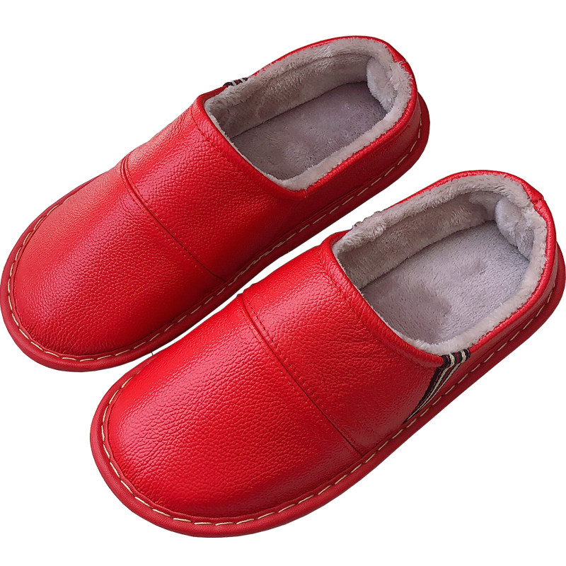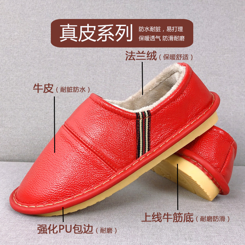 Winter leather cotton slippers women's bag with home couple confinement cotton shoes non-slip floor indoor wool warm shoes men
