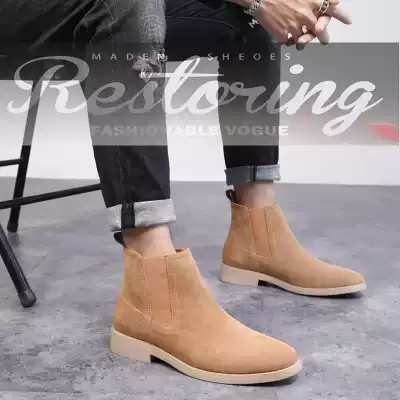 Chelsea boots men's new fashion medium short boots winter plus velvet men's boots high trend leather Martin boots