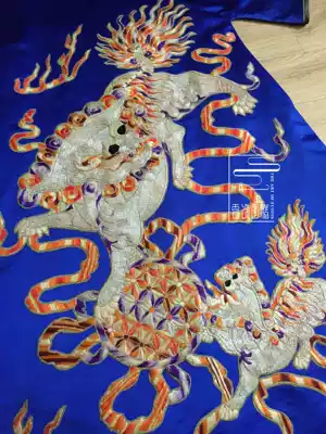 Cloud decoration totem original women's robe Old embroidery handmade lion rolling hydrangea loose version round neck casual dress