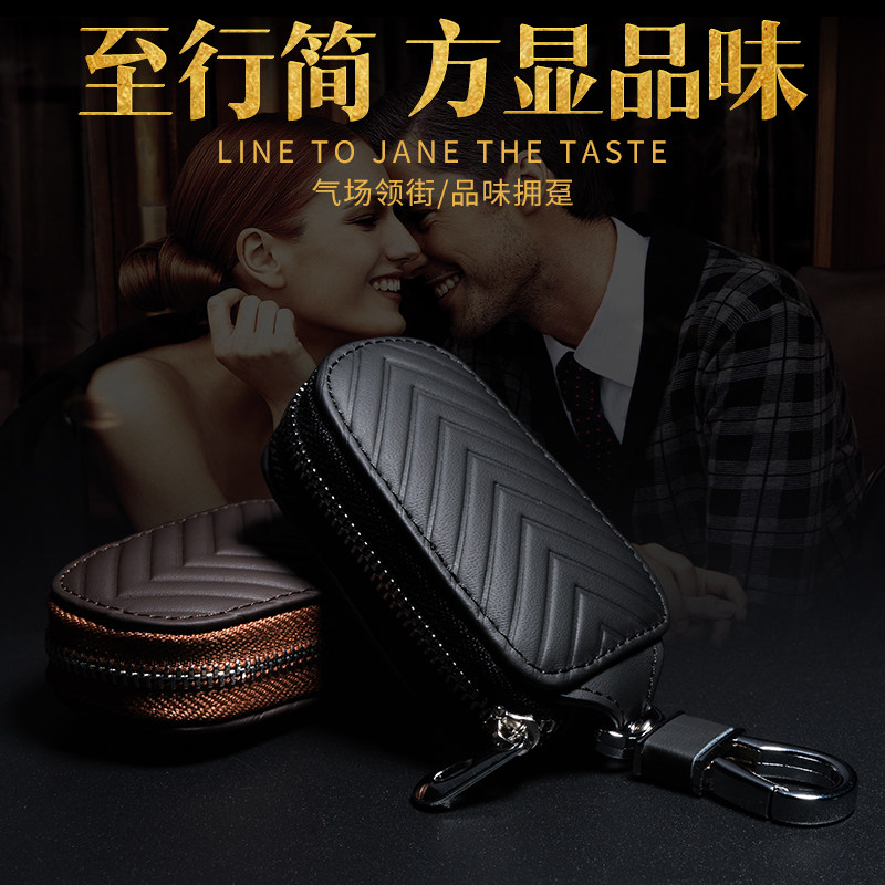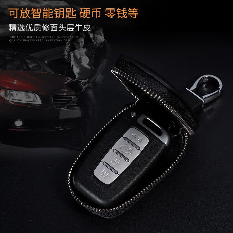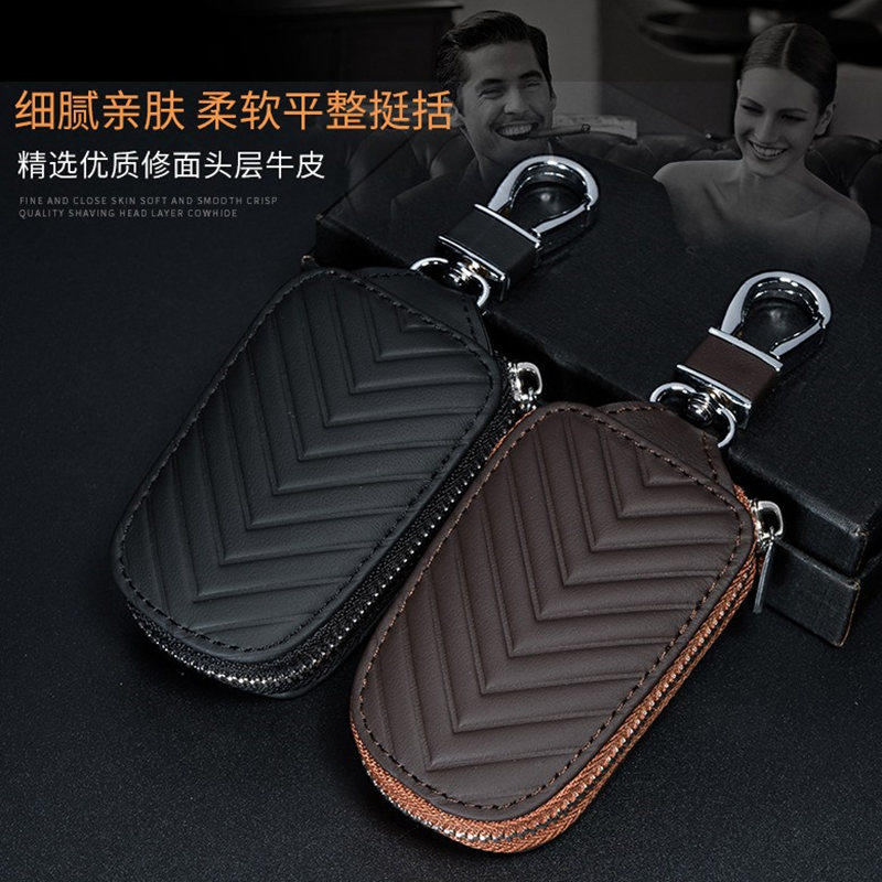 Car genuine leather key bag male and female universal key buckle vehicle remote control protective sleeve foss personality key waist hanging bag