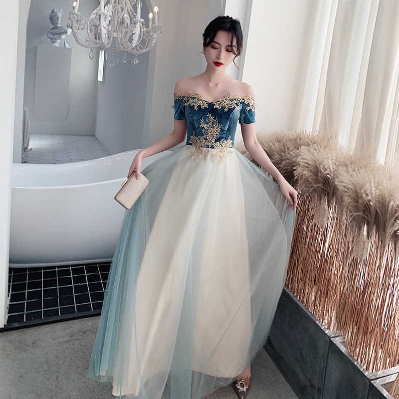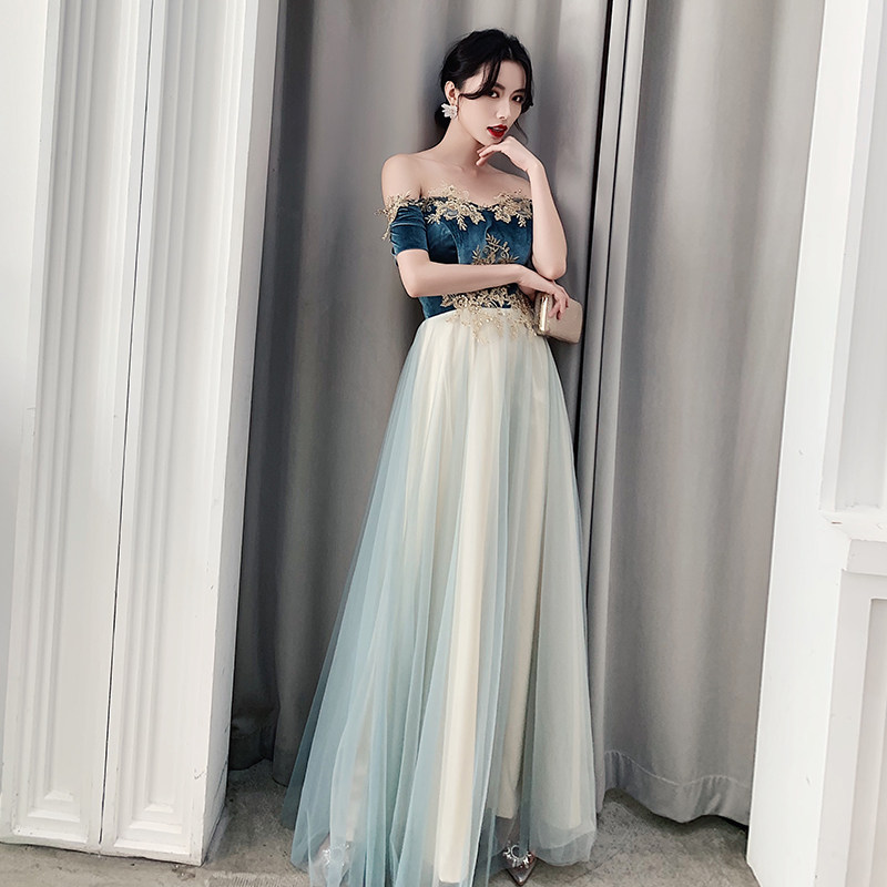 Annual party evening dress female 2021 new summer word shoulder bridesmaid dress sister dress thin banquet dress long version