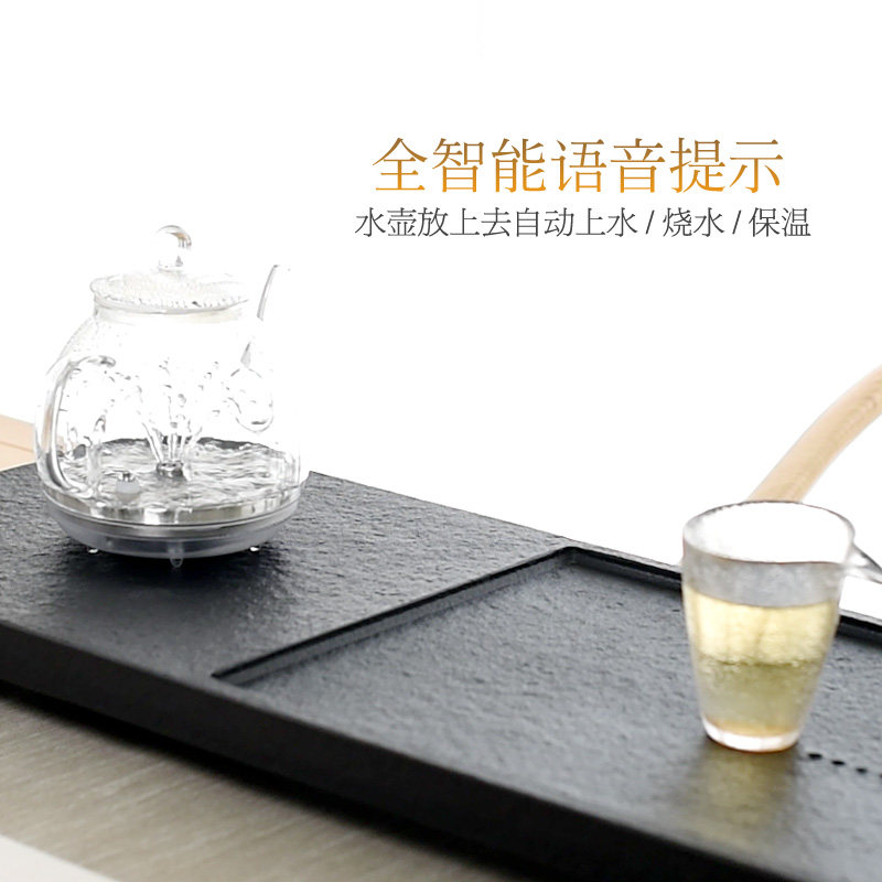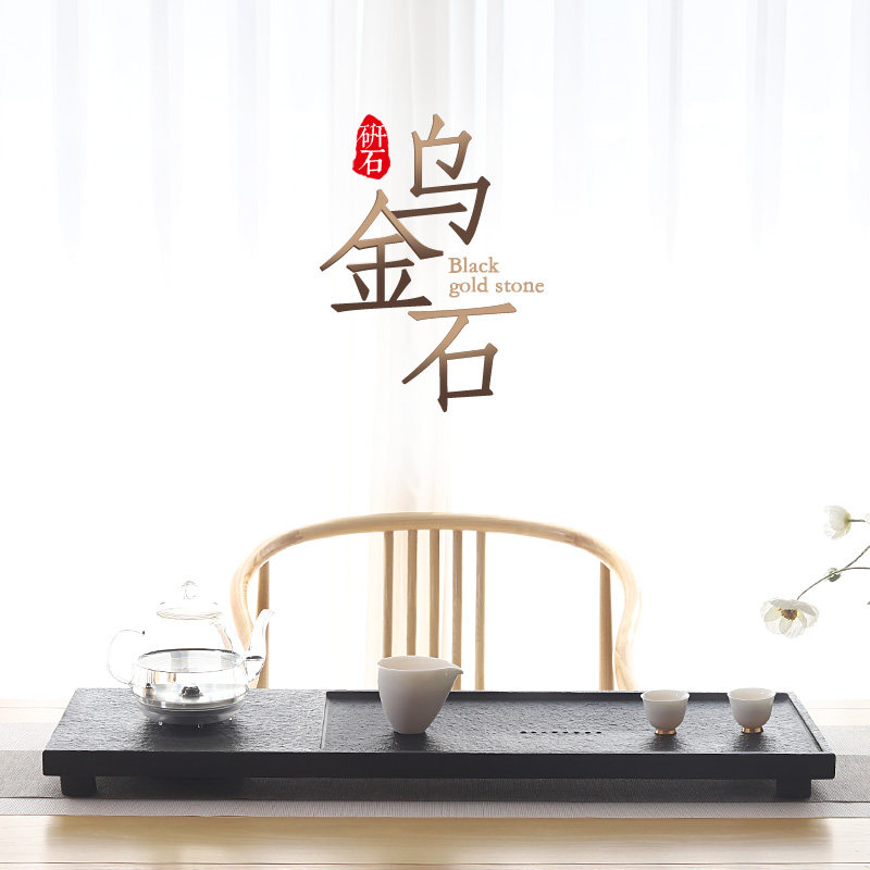 Whole black gold stone tea plate set Stone tea sea Induction cooker automatic bottom water tea table free lettering