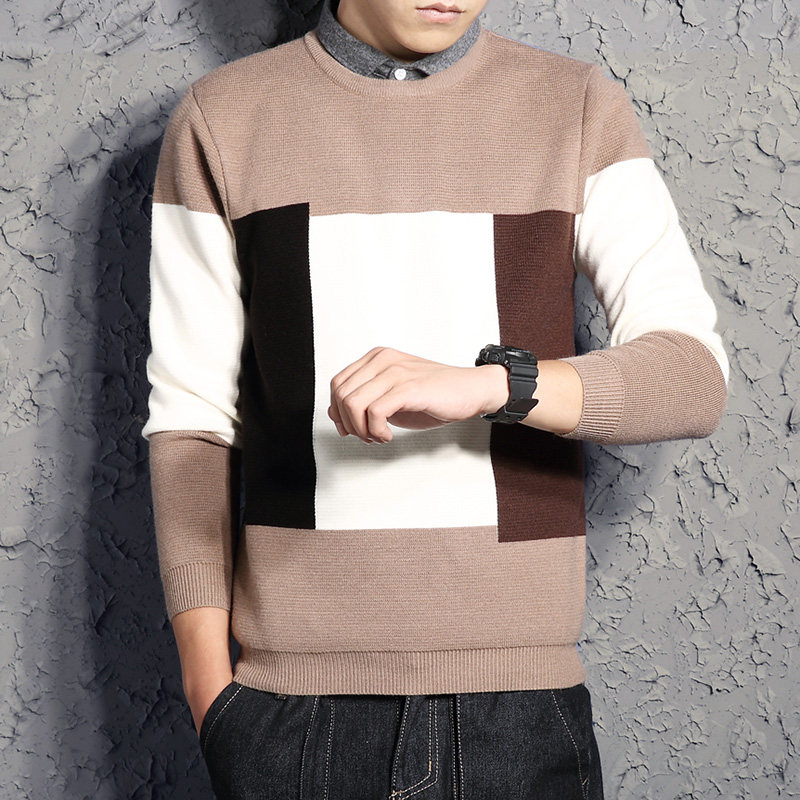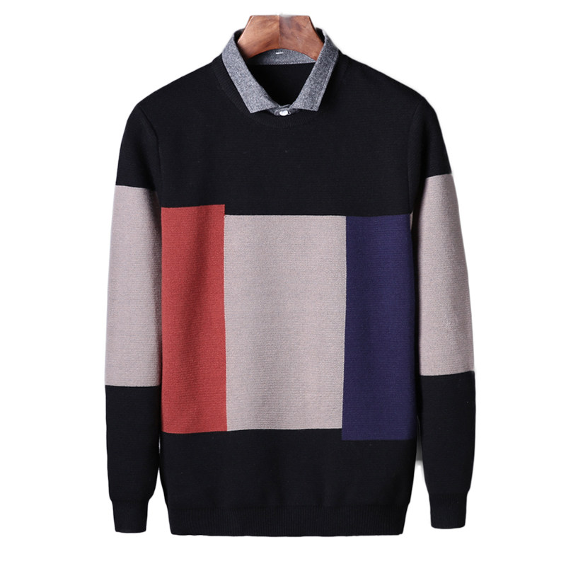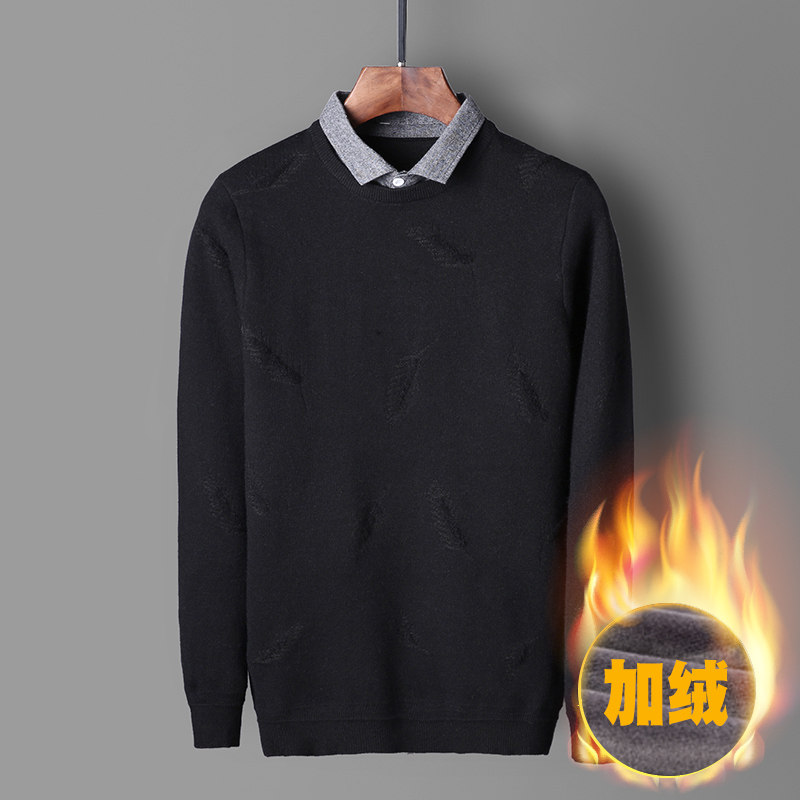 Boarder men's fake two sweater jersey undershirt 2022 autumn winter new plus suede thickened wool weaters Korean version of the knitwear