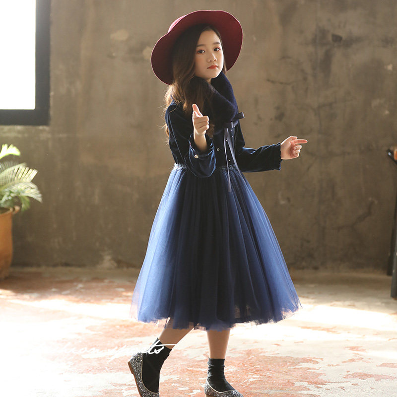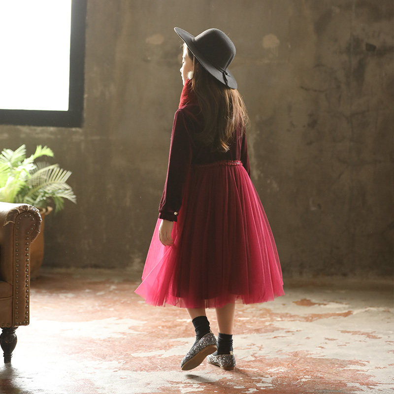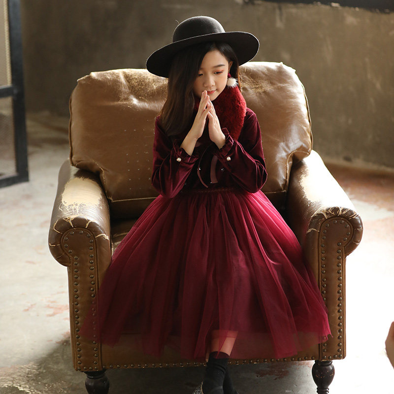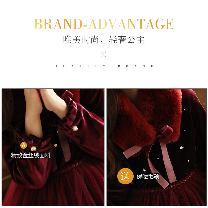 Girl's dress high-end red plus suede thickened superfairy dress New Year's dress Children's princess skirt Winter-Taobao