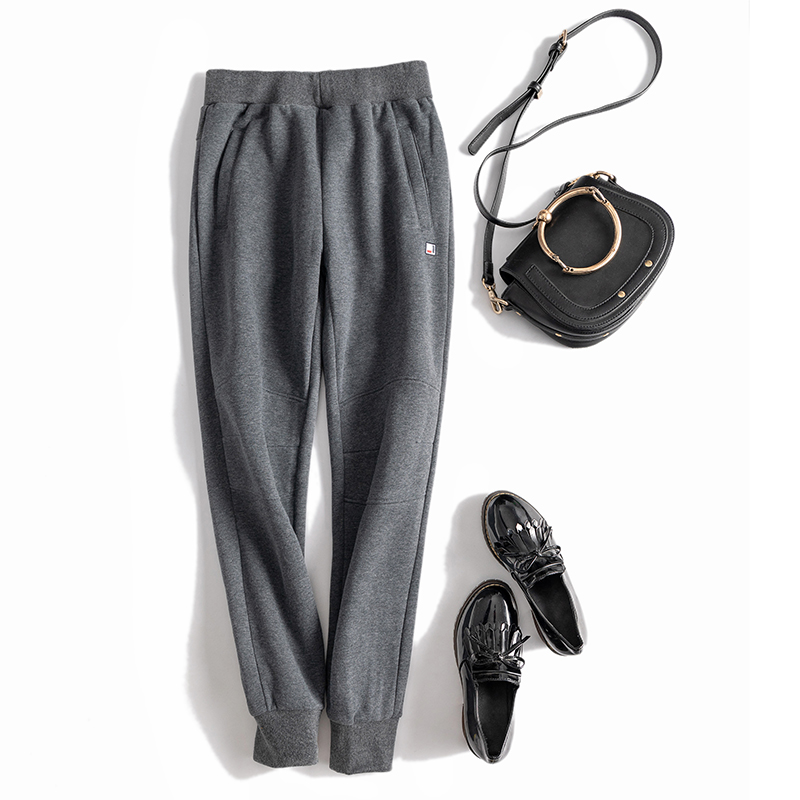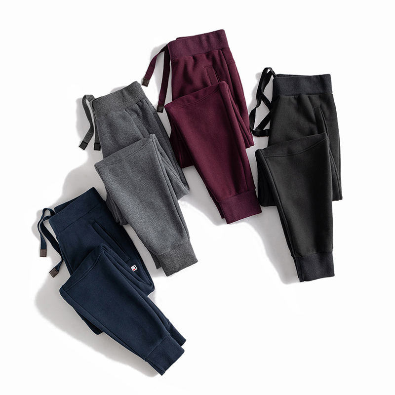Fly France Dachang single men and women XL plus velvet pure cotton close-up sanitary pants to keep warm and look thin sports brushed trousers