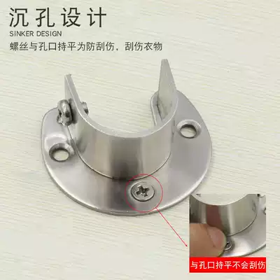 Wardrobe hanging rod holder Stainless steel open flange seat u-shaped household accessories Round tube Stainless steel tube seat