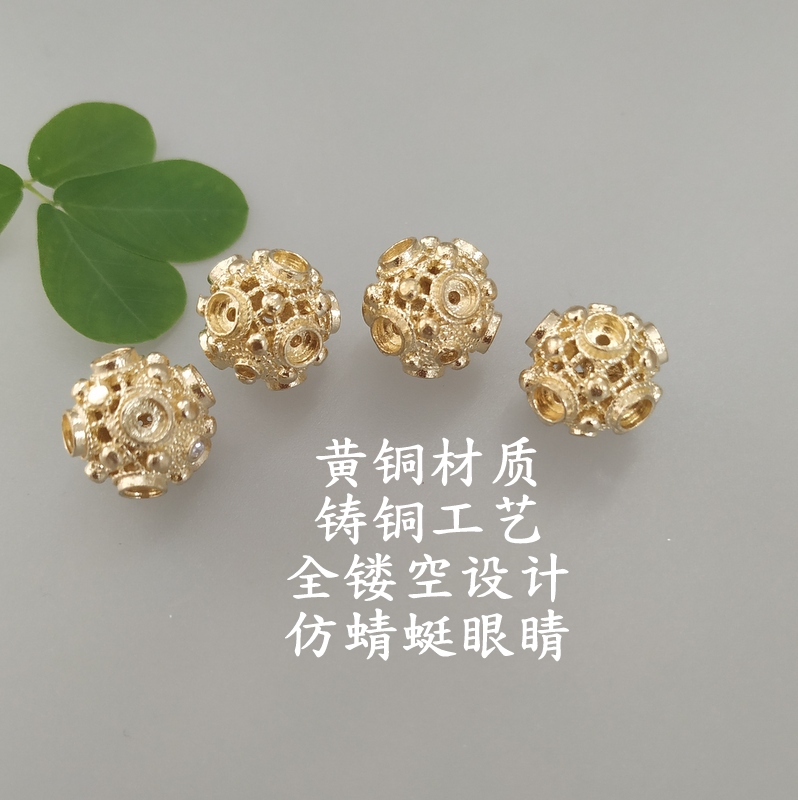 13mm brass dragonfly eye beads 252 far fragrance DIY ornaments hollowed-out inlaid with Li Jing training scattered beads big separy beads