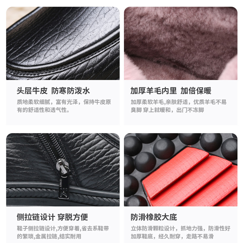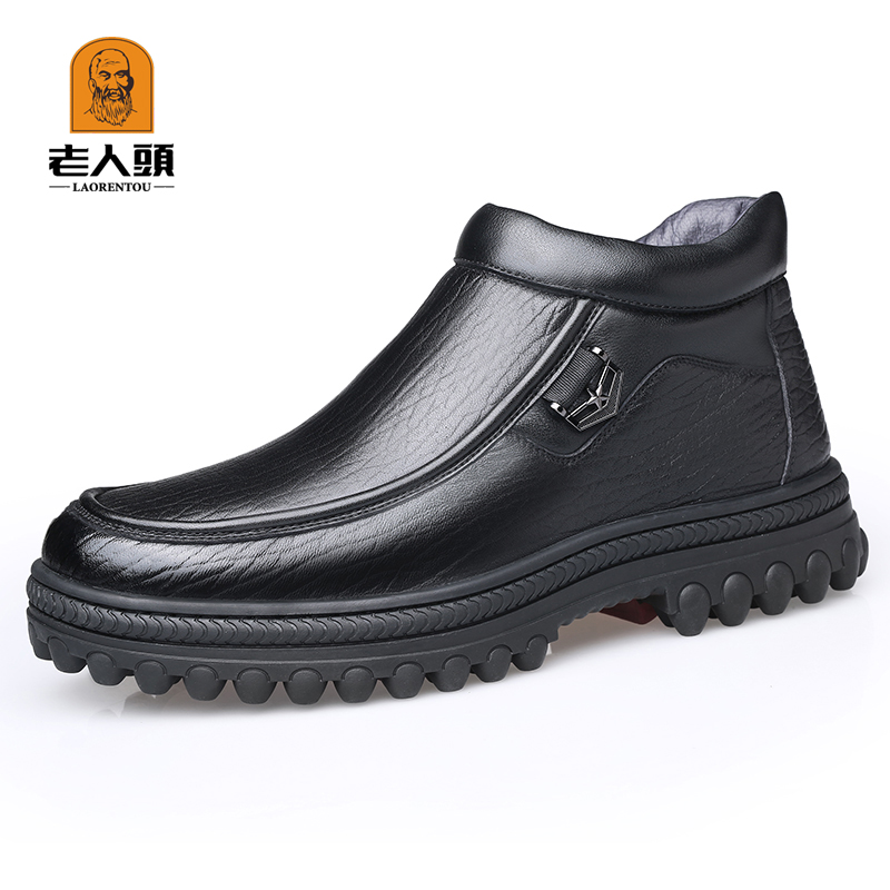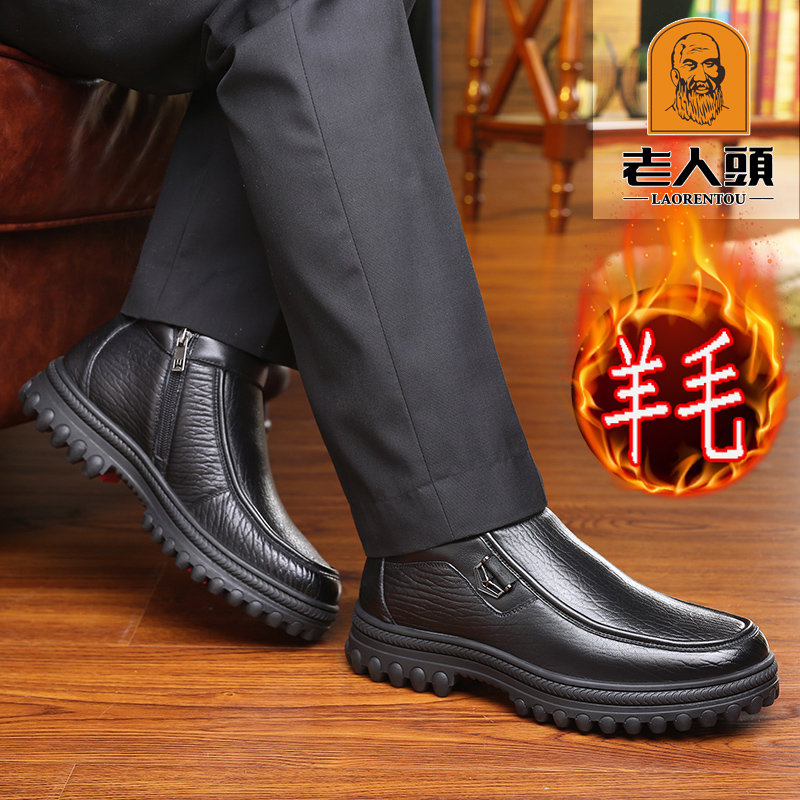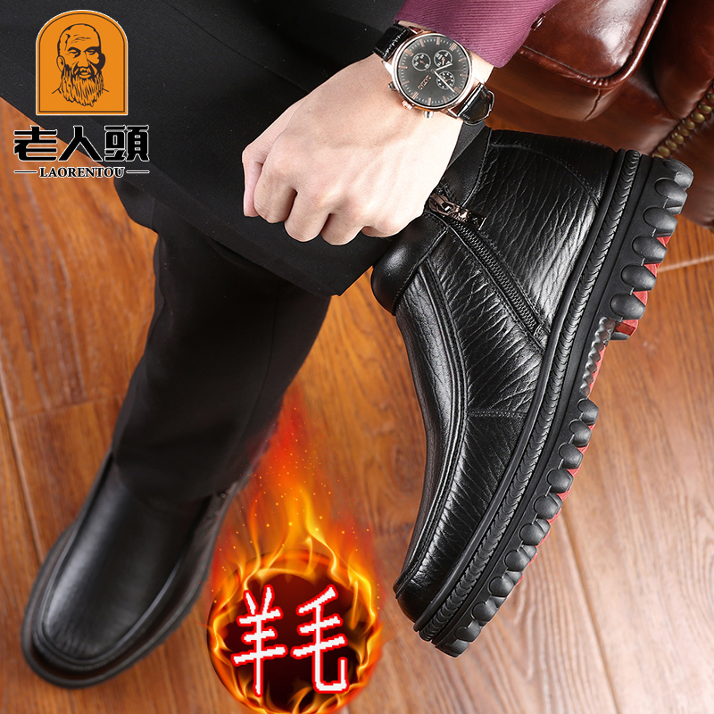 Old man's head men's cotton shoes winter warm plus velvet dad shoes wool casual leather middle-aged and elderly non-slip thick-soled men's shoes
