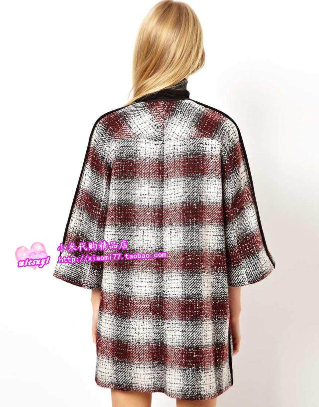 (Special spot)ASOS plaid wool blended wool coat women's spring and autumn coat medium and long temperament