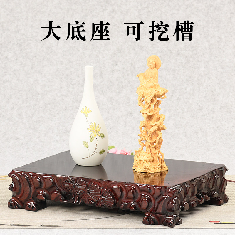 Solid wood root rectangular chic stone base can be digged jade vase vase flowery scenic fish tank