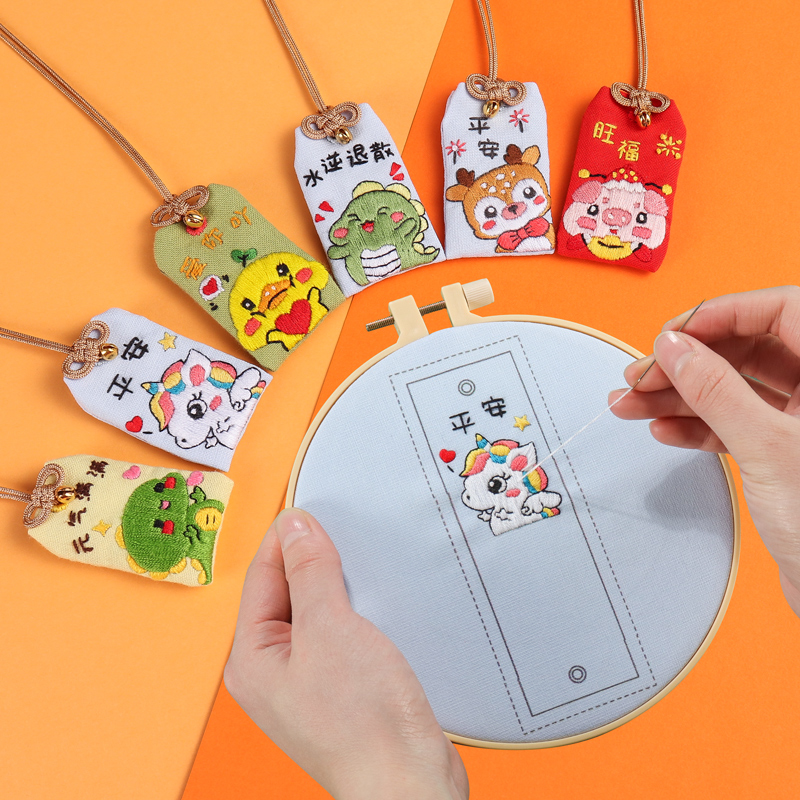 Body protection safety charm Hand embroidery diy self-embroidery send boyfriend material bag Royal guard peace blessing purse Couple carry
