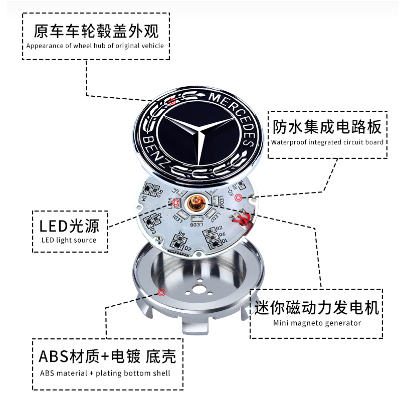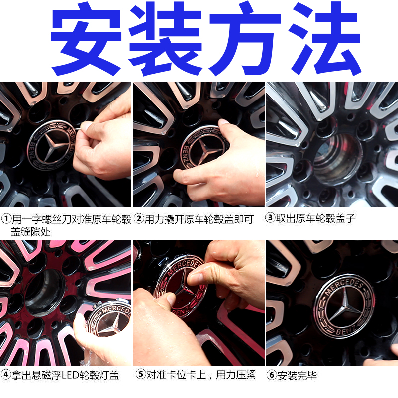 Dedicated Mercedes-Benz E300 wheel hub light car logo center cover tire magnetic levitation light LED night light modified luminous atmosphere