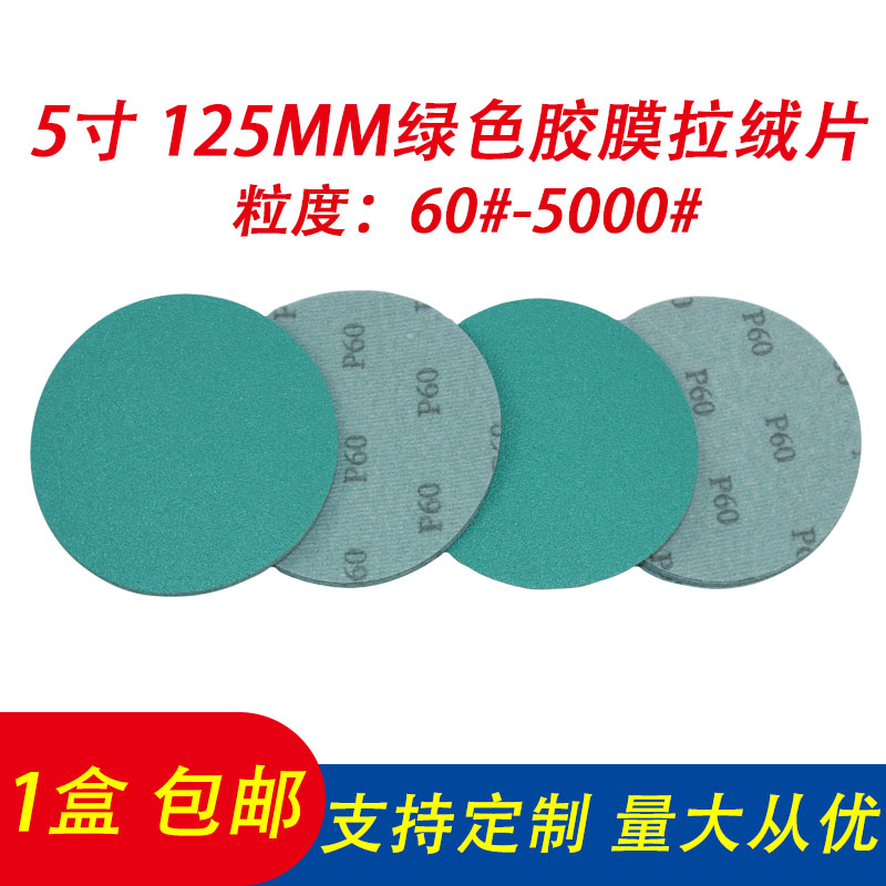 5 inch 125mm green adhesive film flocking disc sand paper pull down car batch ground powder polished and polished sand leather 5000 #