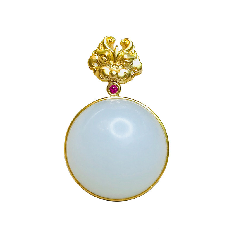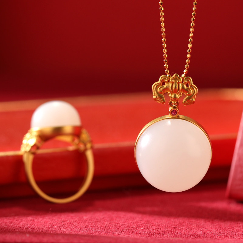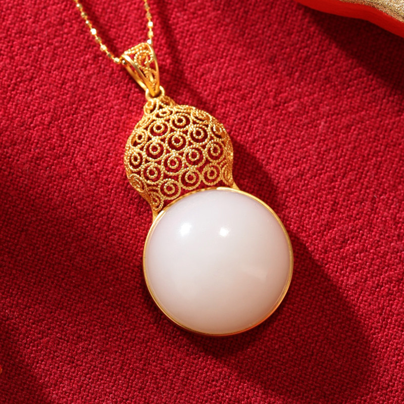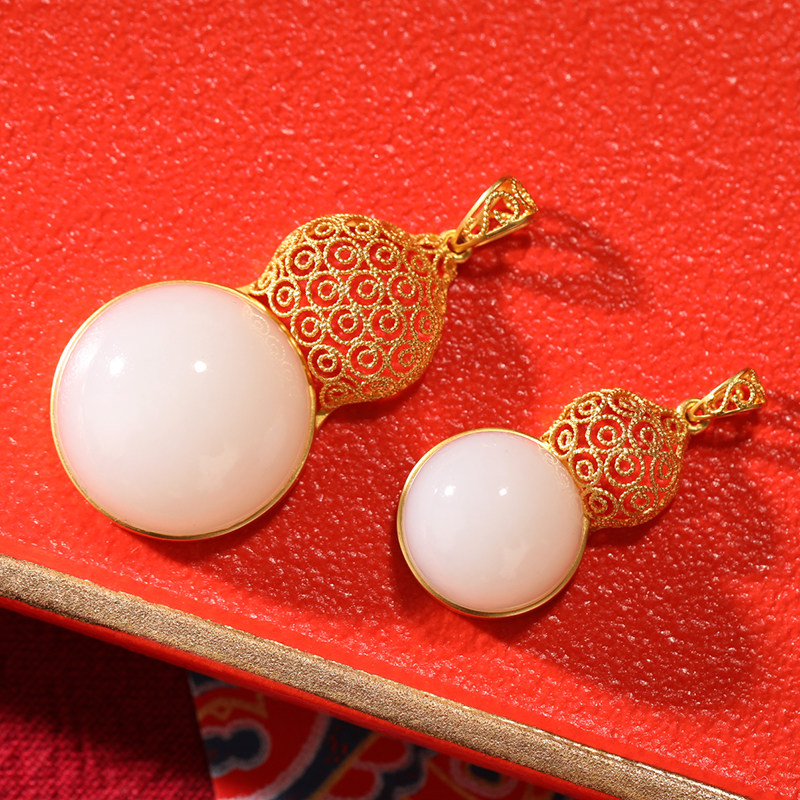 (Xiong's Jewelry) Hetian suet white jade mountain flowing water original national style filigree color gourd pendant ring