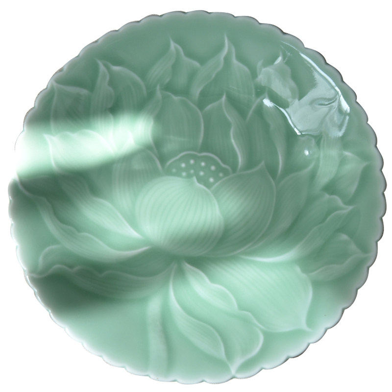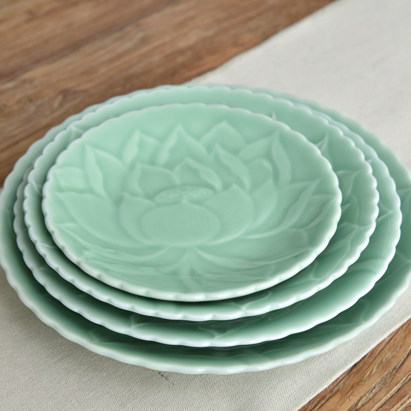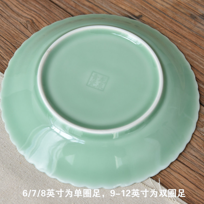 Longquan celadon creative tableware ceramic plate household dish round flat plate shallow plate Japanese-style plate 7-12 inch