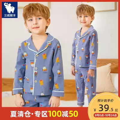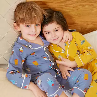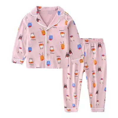 Children's home clothes 2021 spring new boys and girls baby cotton pajamas set Korean home two-piece set