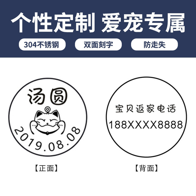 Pet Pendant Laser Customized Dog Tags Feline Identity Card Listed Dog Necklace Bell Set For Dog Kennel Item Ring