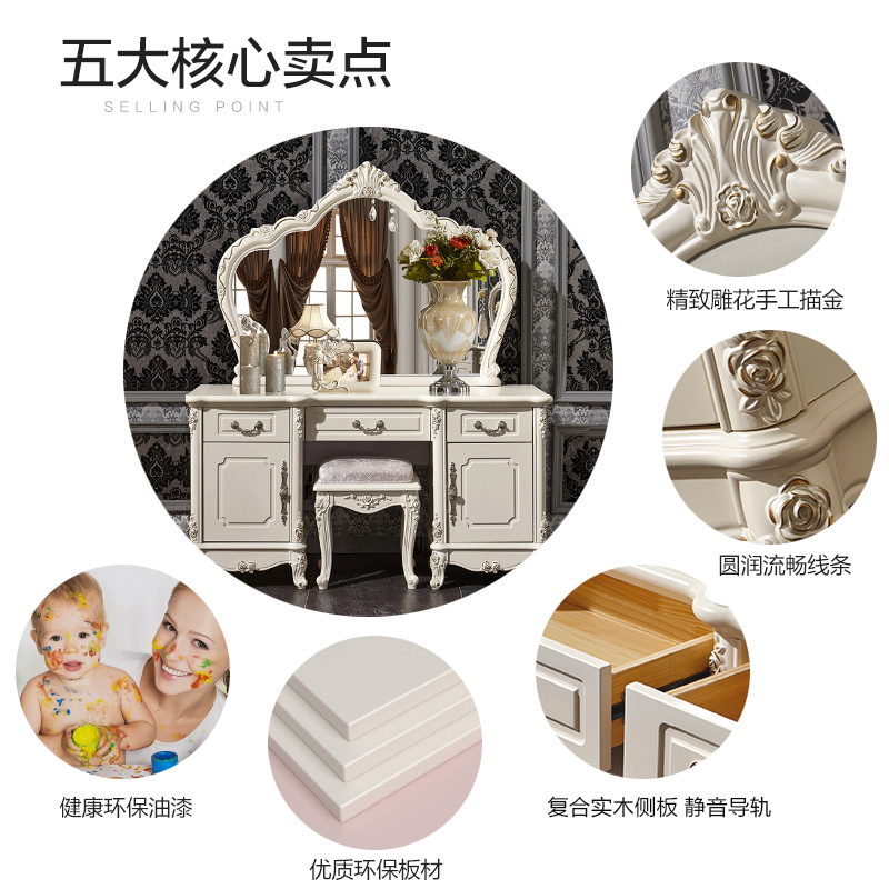 European style dressing table women's bedroom makeup table ivory white small apartment luxury dressing table makeup cabinet storage integrated table