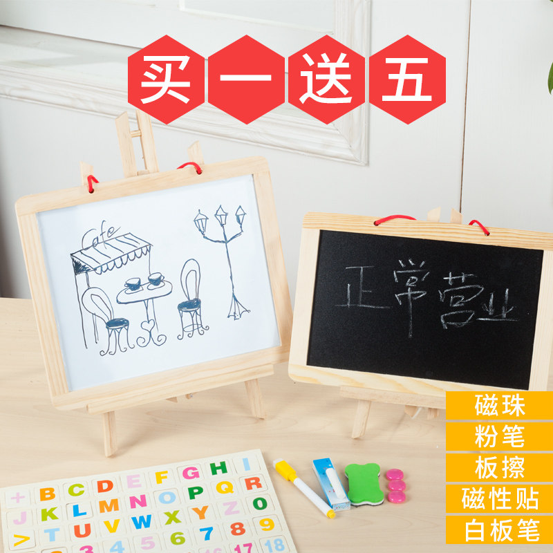 Children's desktop magnetic hanging small blackboard shop with billboard handwriting chalk writing board double-sided small whiteboard bracket primary school students painting board graffiti home teaching erasable message board