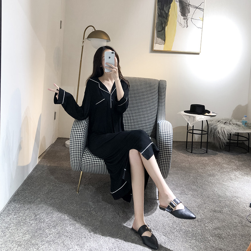 Sexy pajamas Model long sleeve dress long sleeping dress large size loose fat MM pregnant home suit recommended