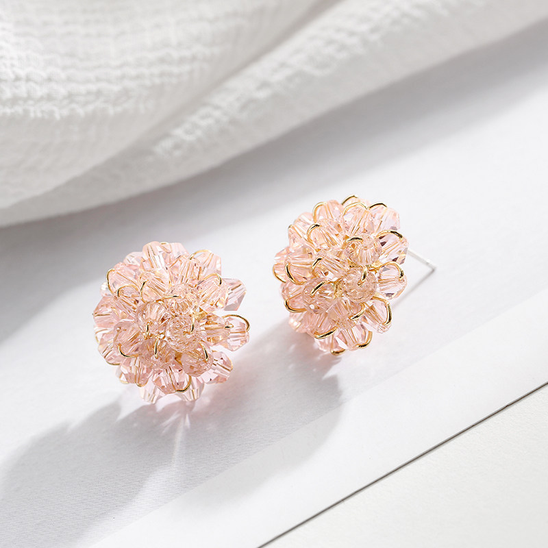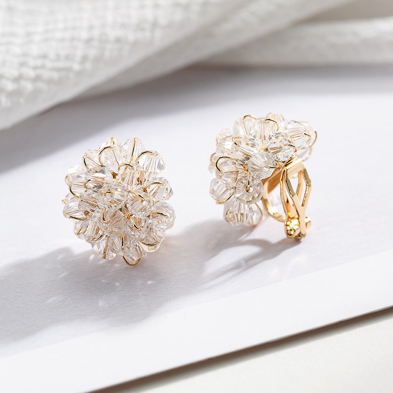 Ball earrings 2022 new trendy exaggerated personality net red sterling silver earrings imitation crystal ear clips female earrings without ear holes