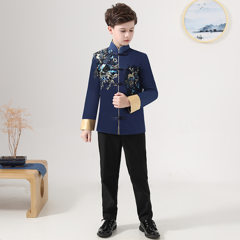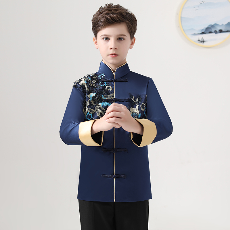Children's Tang Fashion Han clothes boy gown Chinese Zhongshan dress rehearsal for Chinese wind CUHK Tong Chair Performance Costume-Taobao